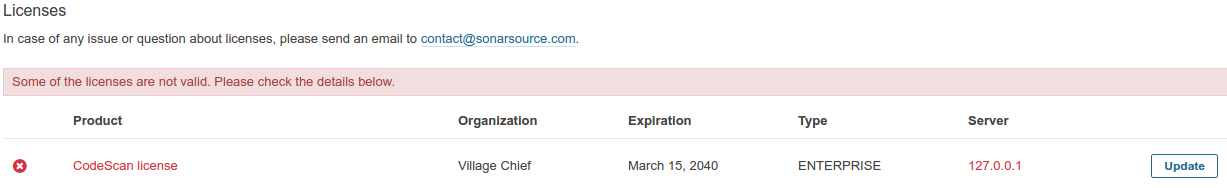- Click Update next to the ‘CodeScan license’